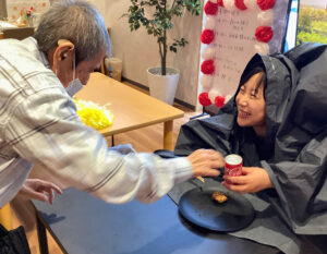 大きなたこ焼きを口に運ぶ場面では、利用者さまから「そっち!こっち!」と声が飛び交い、笑い声が絶えない楽しいひとときになりました😂