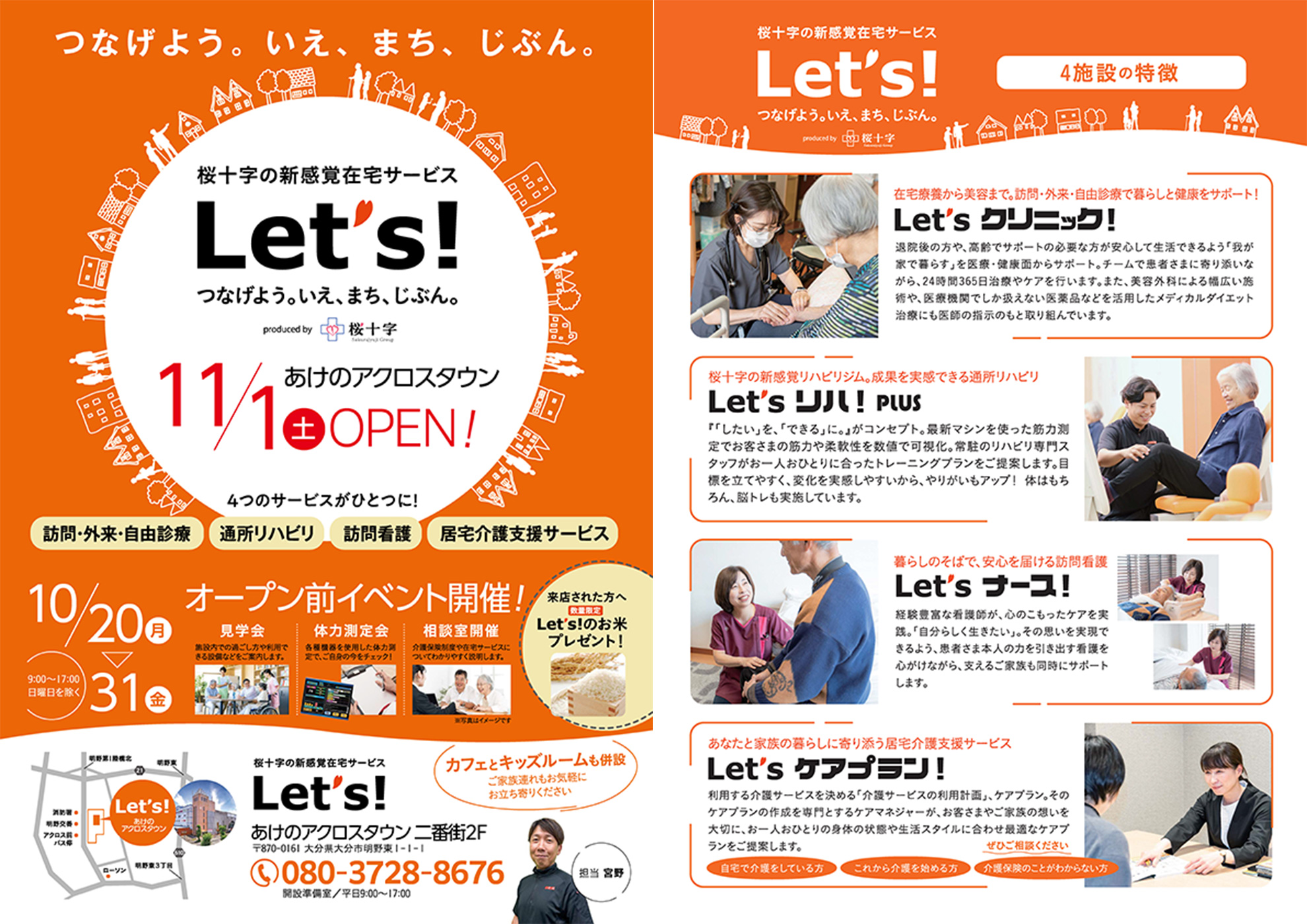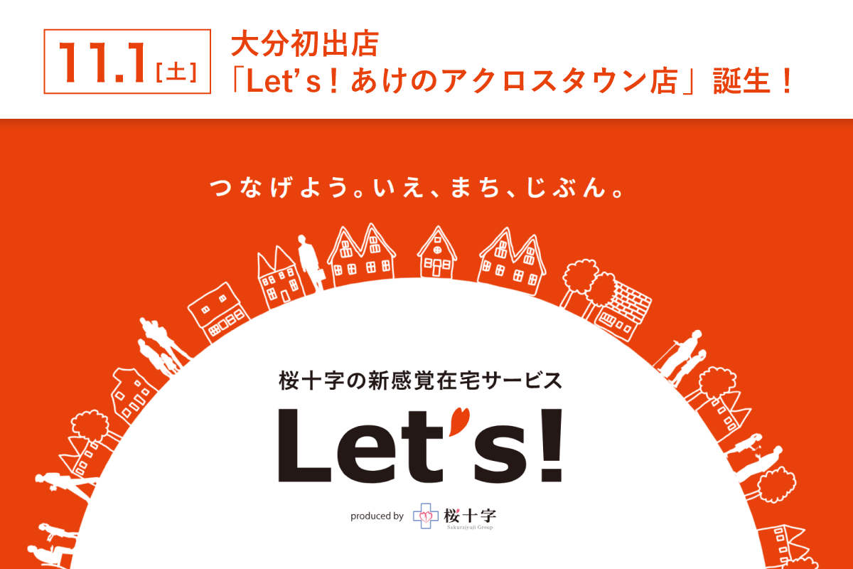 医療・介護・予防医療を軸にウェルビーイング・フロンティアを目指す桜十字グループは、2025年11月1日(土)、大分県大分市の複合商業施設「あけのアクロスタウン」内に、在宅サービス「Let’s!」の新店舗をオープンいたします。