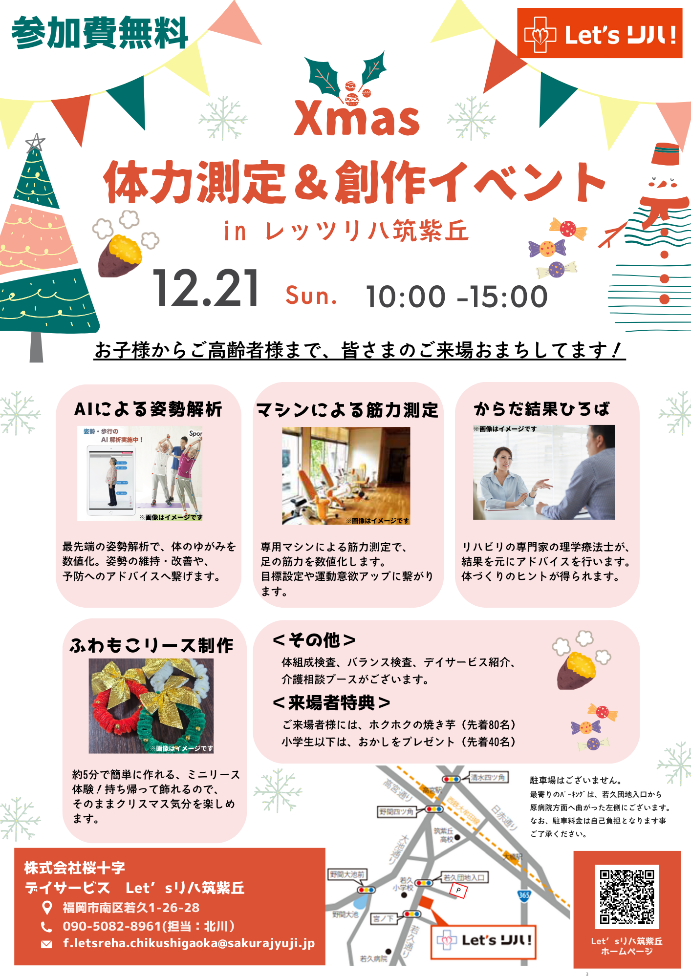 12月21日(土)、Let’sリハ!筑紫丘でクリスマスイベントを実施します🎉