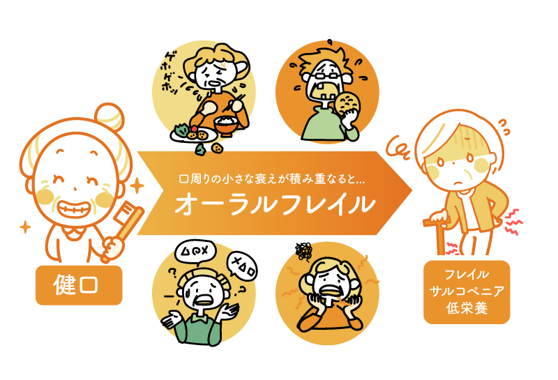 オーラルフレイルは、年齢を重ねると誰にでも起こる自然な変化です。しかし、はじめは小さなサインから始まります。