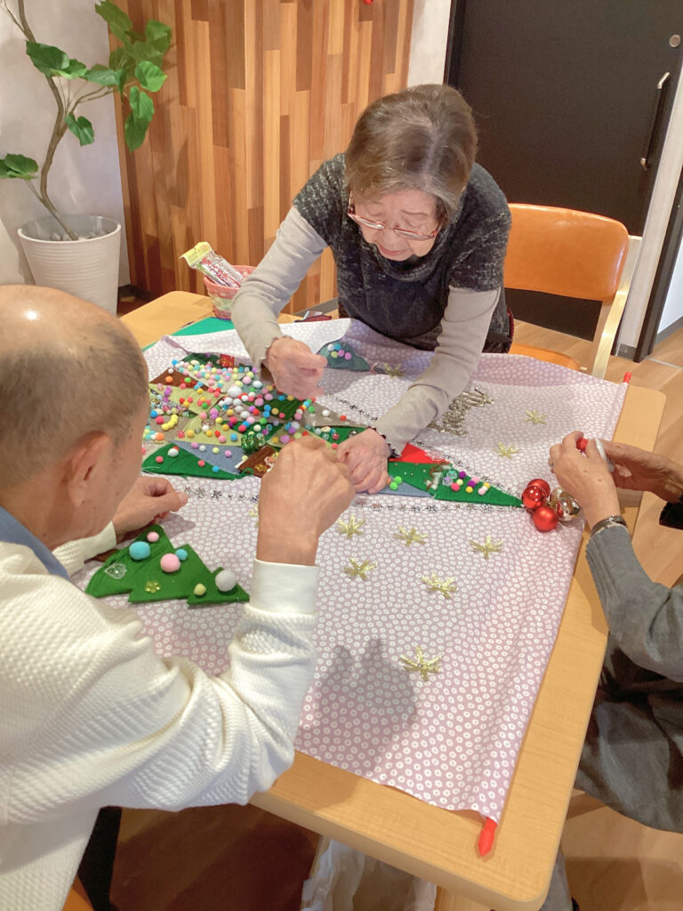 Let’sリハ!六ツ門では、クリスマスに向けて、利用者さまの皆さまにさまざまな制作活動に取り組んでいただきました✂️