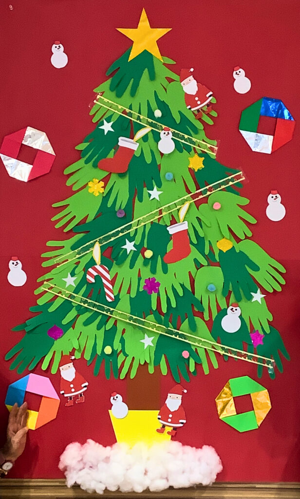 手形が重なったツリーは、次第に華やかで存在感のある作品へと仕上がっていきました✨