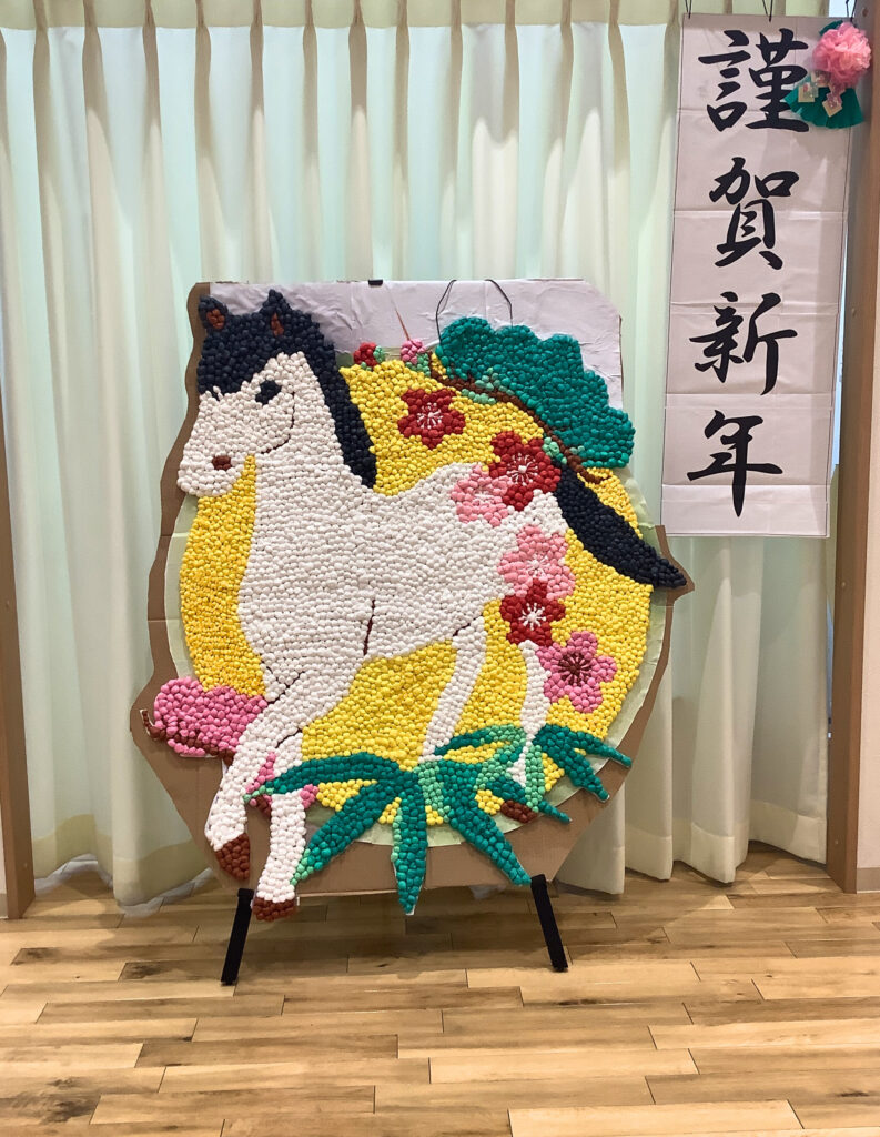 完成した作品は1月に店舗内へ飾り、皆さまに「レッツおみくじ」を引いていただきながら、お正月らしい雰囲気を楽しんでいただきました🎯🎍