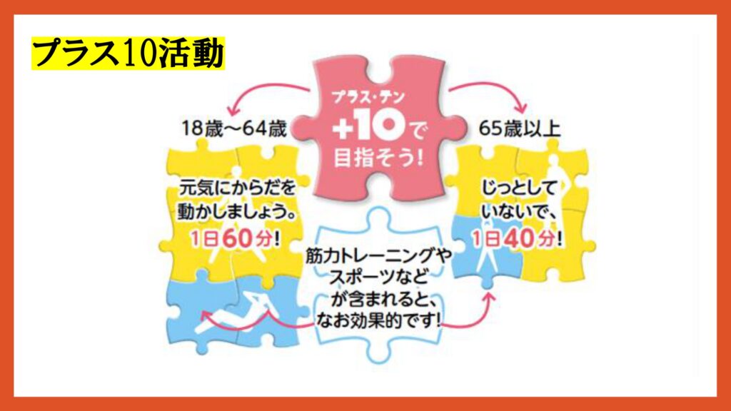 また、座っている時間を減らし、少しの時間でも立って体を動かす「プラス10活動」も提案されています✨