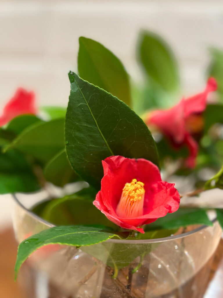 福岡市西区にあるデイサービス「Let’sリハ!石丸」では、利用者さまがお持ちくださった山茶花が綺麗に咲き、施設内を華やかに彩っています🌸