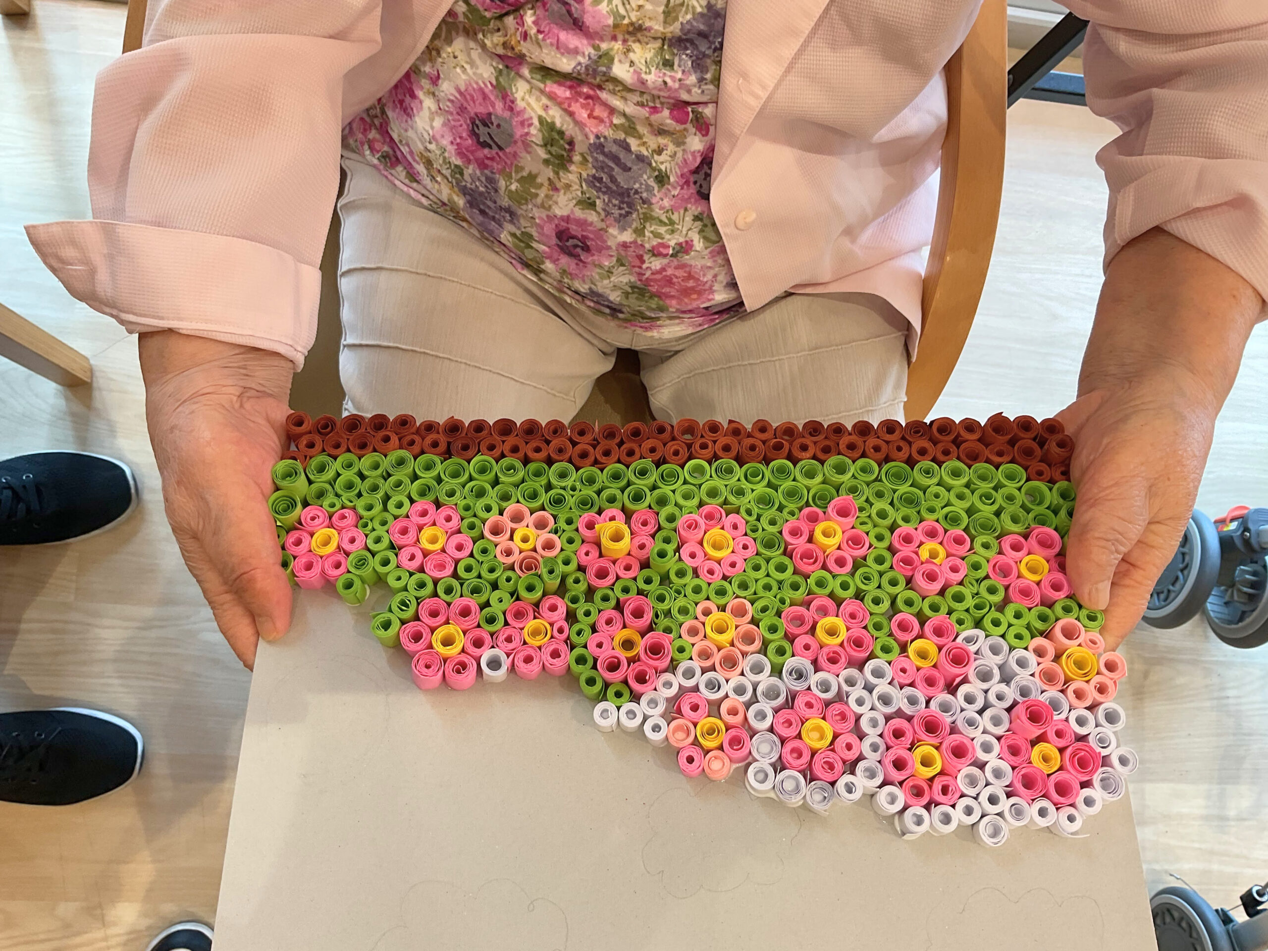 このように、物作りレクリエーションは手先のリハビリだけでなく、会話や笑顔につながる大切な時間です。