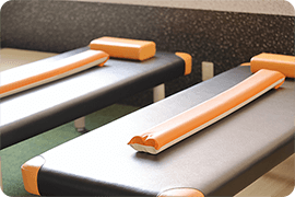 体をしっかりとほぐし、柔軟性を高めます。柔軟性を高めて筋力トレーニングをすることで、より効果的な生活機能訓練ができます。余計な負担がかからない設計のストレッチマシンが使用できる店舗もあります。 ![]()  フレックスチェア 座面が360°全方向に傾斜します。骨盤帯につながる筋のリラクゼーションや脊柱彎曲運動を引き出します。 ![]()  ツイストチェア 胸椎部を中心とした回線運動を行うことで、脊柱の湾曲が改善し、四肢の筋緊張開放が期待できます。