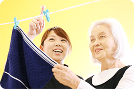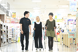 実際に日常で行う動作そのものを実践するトレーニングです。屋内で行うトレーニングと、外へ出ていき実生活の場で行う超実践トレーニング(インザモール店で実施)があります。 ![]()  ADL訓練 食事、排せつ、移動、入浴など、生活に必要不可欠な日常動作を行うための訓練です。それぞれに必要な動作をトレーニングします。 ![]()  IADL訓練 柔らかいマット上に立つことで、足指の力を鍛えてバランス力をアップします。砂利道などデコボコのある地面を歩く訓練になります。