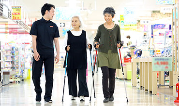 ショッピングモール内の短時間型(半日型)デイサービスです。立地を活用し、モールの施設や設備を利用した実践トレーニングができます。